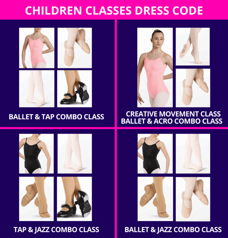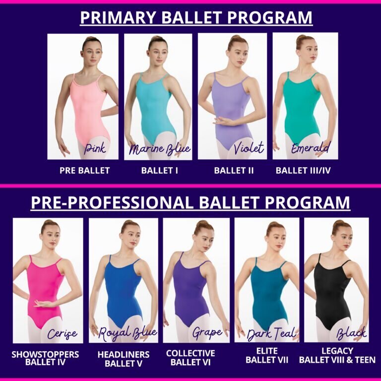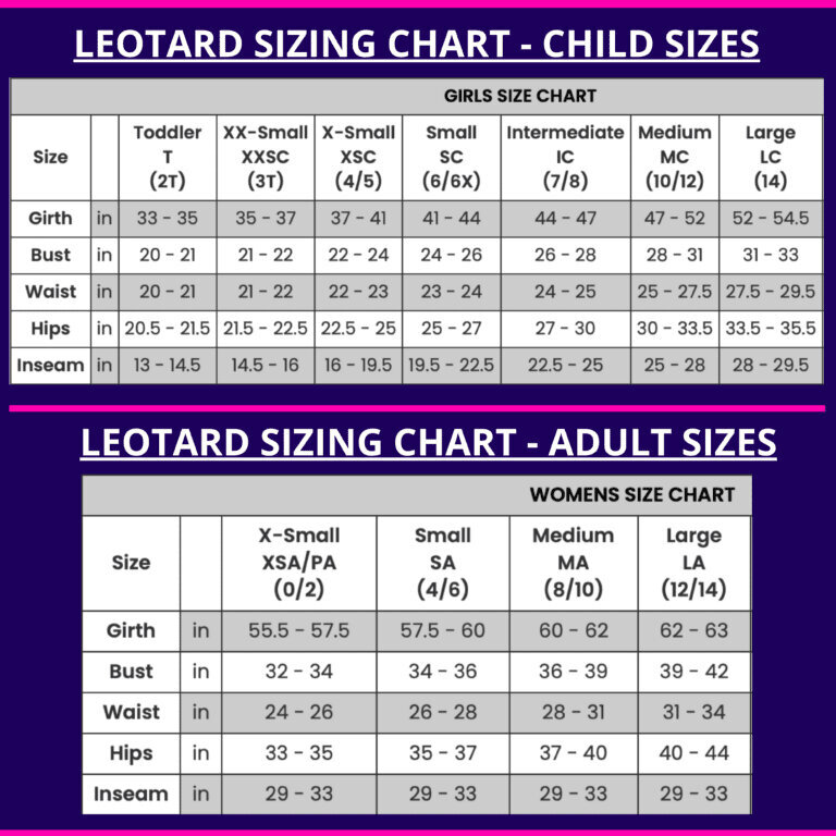 All dancers must wear the designated WCDC uniform for class: the approved leotard, tights, and dance shorts in the specified colors and styles. Refer to the sizing chart below to select the correct size for your dancer—leotards should fit snugly, not loosely.